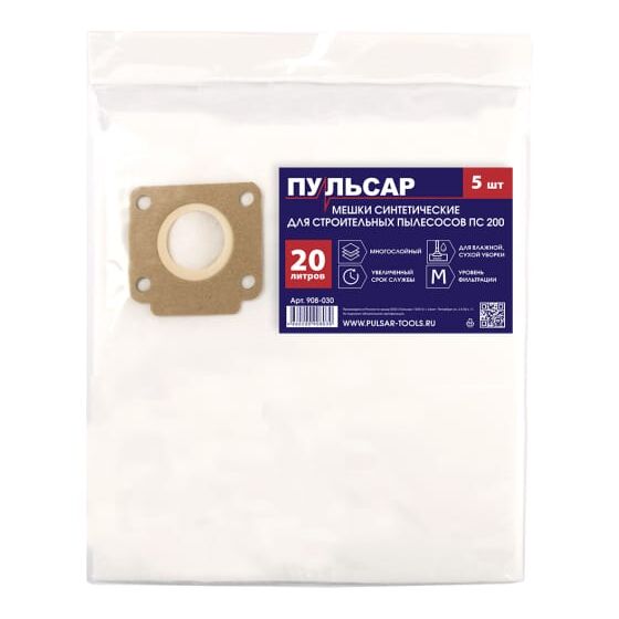 Мешок для пылесоса ПУЛЬСАР ПС 200 (908-030) синтетический 20 литров (5 шт)