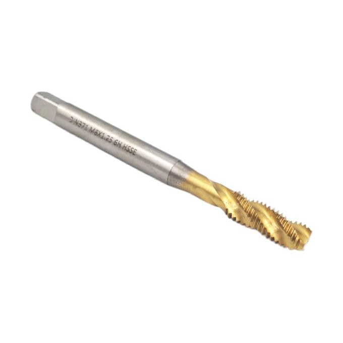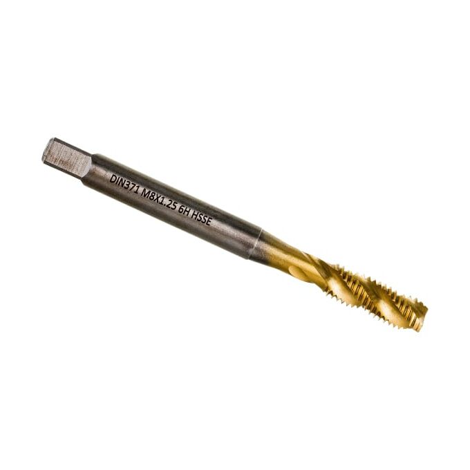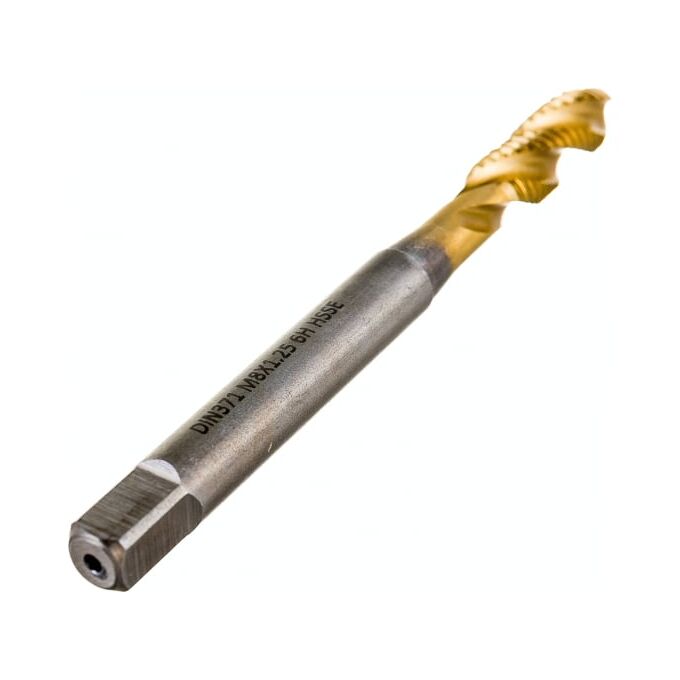 Метчик машинно-ручной TORNERI DIN371 TiN (036390) М8х1.25 HSSE 6H с винтовой канавкой для глухих отверстий