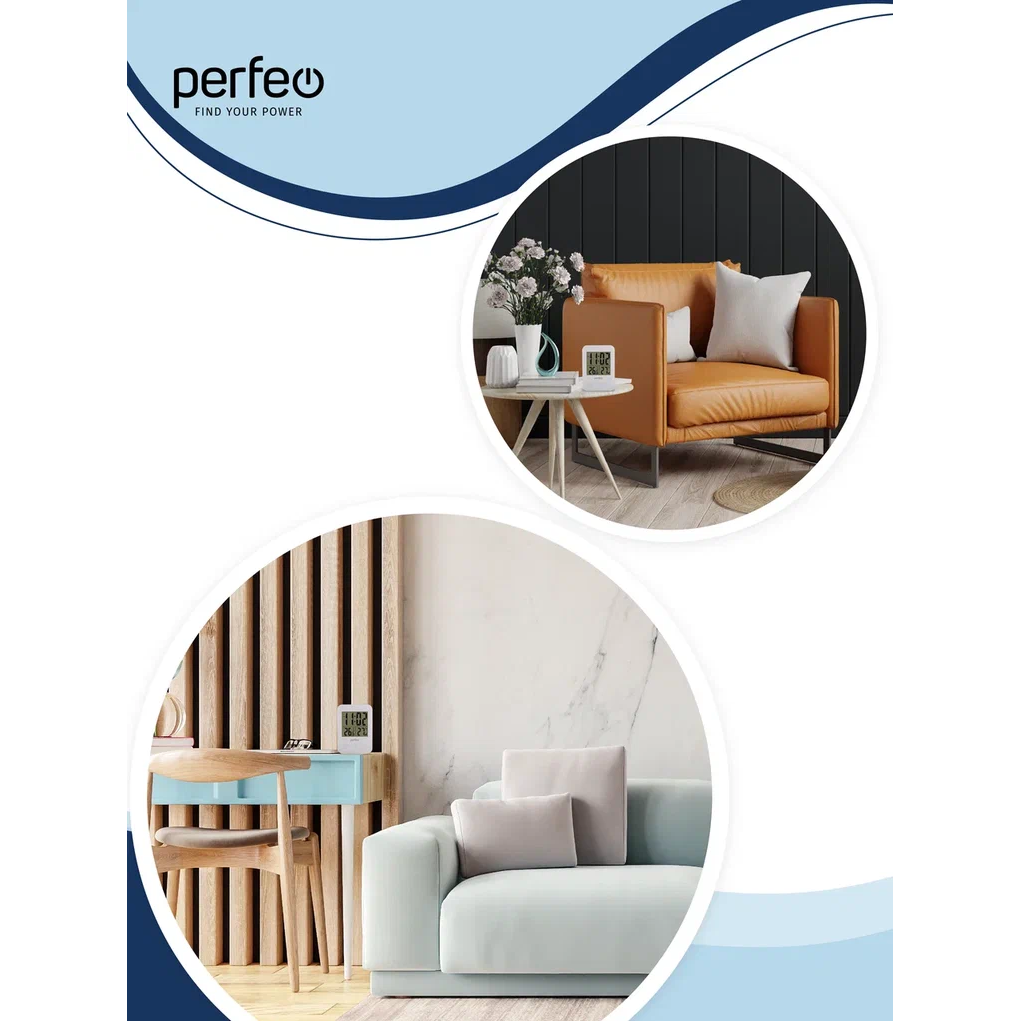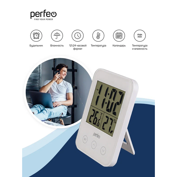 Часы-метеостанция Perfeo "Touch", (PF-S681) время, температура, влажность, белые