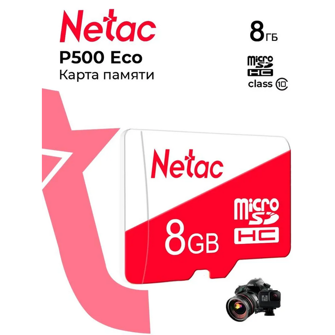MicroSD 8GB Netac P500 Eco Class 10 без адаптера