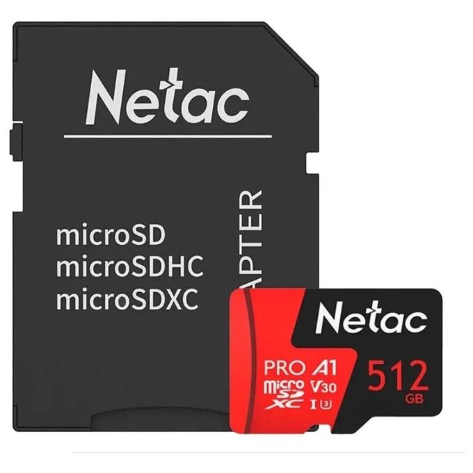 MicroSDXC 512GB Netac P500 Extreme Pro Class 10 UHS-I A1 V30 (100 Mb/s) + SD адаптер