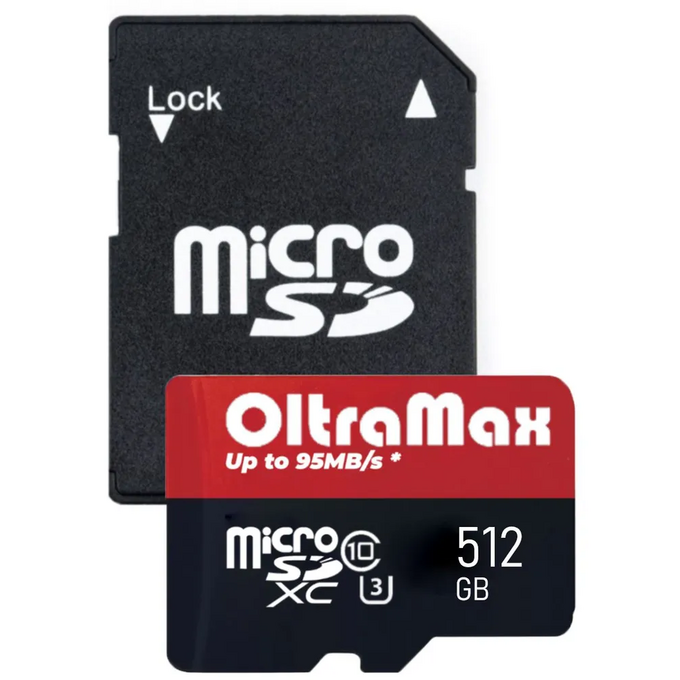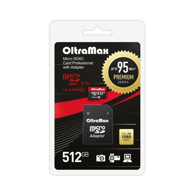 MicroSDXC 512GB OltraMax Class 10 Premium UHS-I U3 (95 Mb/s) + SD адаптер