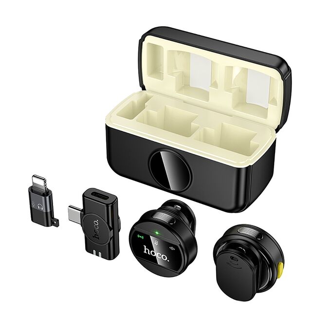 Микрофон Hoco петличный L22 Bright with case (iP/Type-C) (black) (240987)