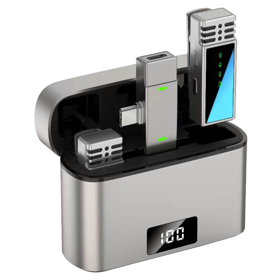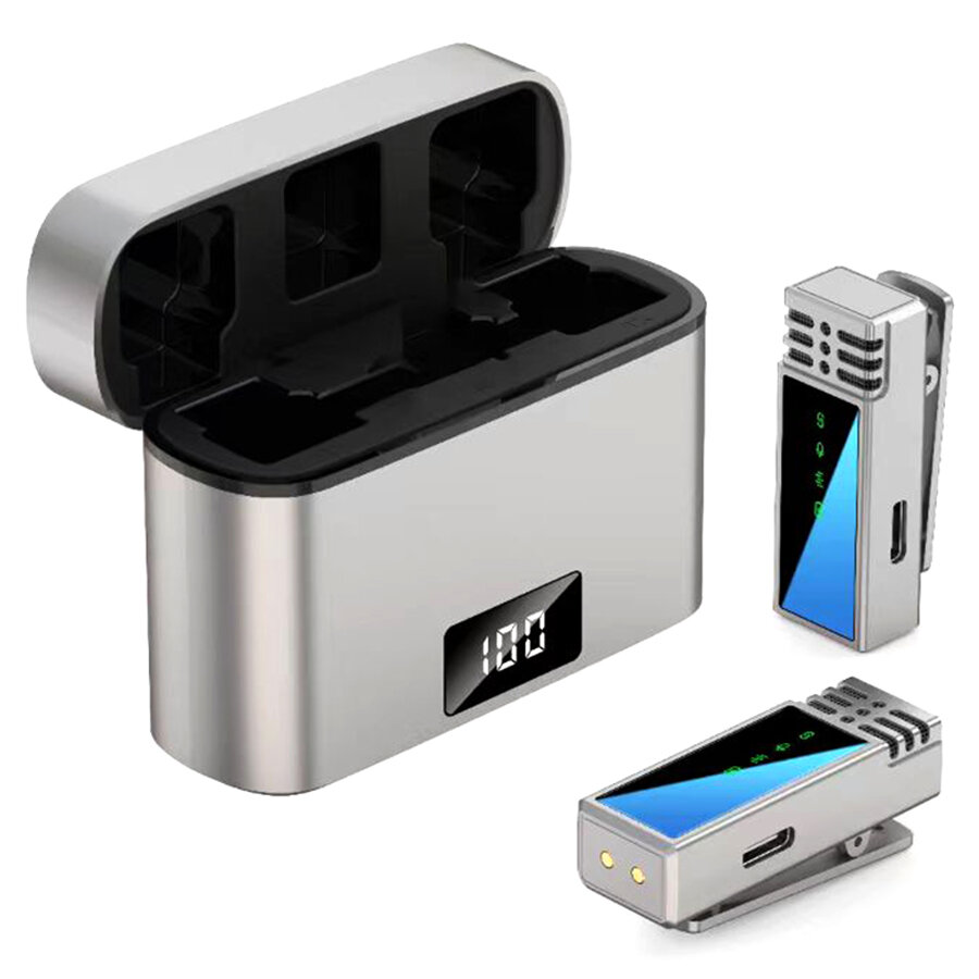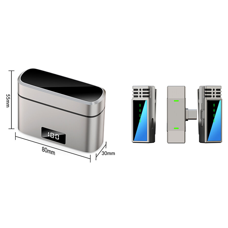Микрофон петличный JMARY MW-15 Type-C, беспроводной Bluetooth, серый металлик
