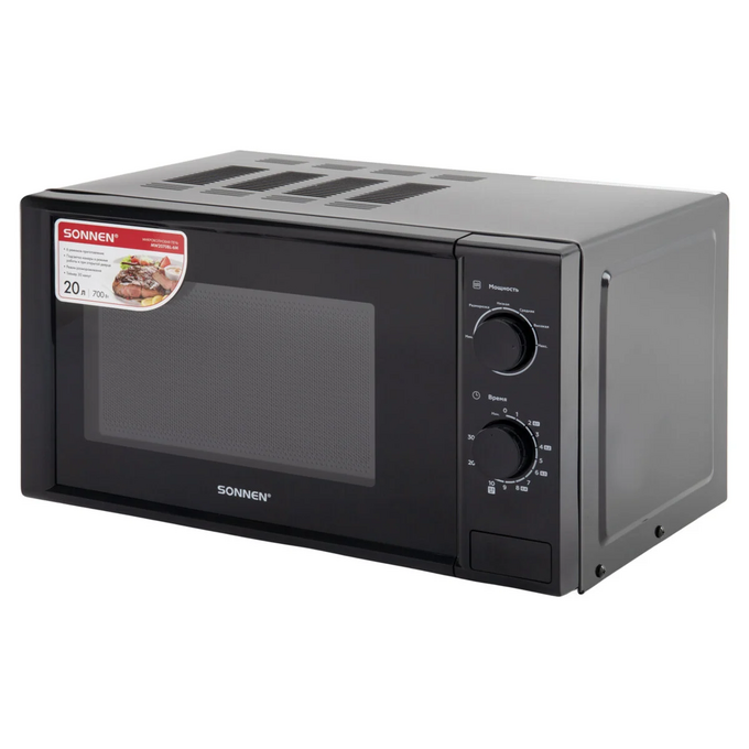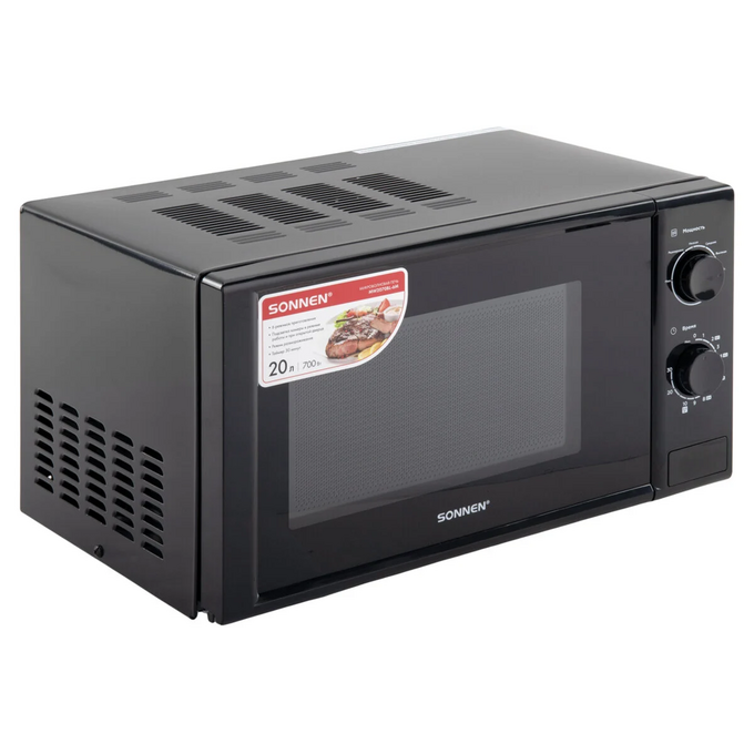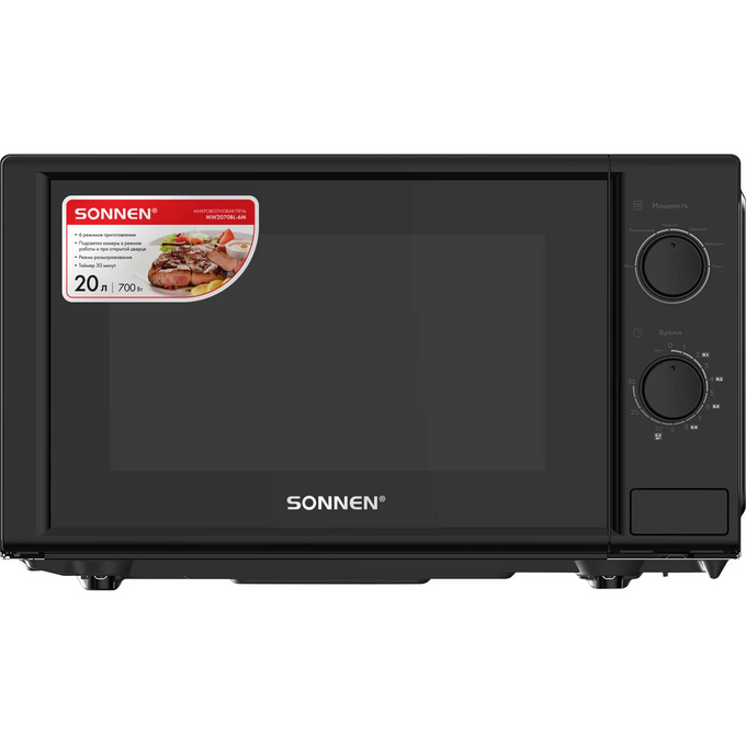 Микроволновая печь SONNEN MW2070BL-6M, 20л, 700Вт, таймер, механическое управление, кнопка, черная