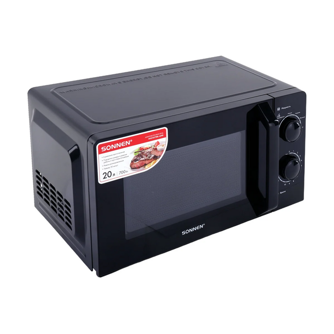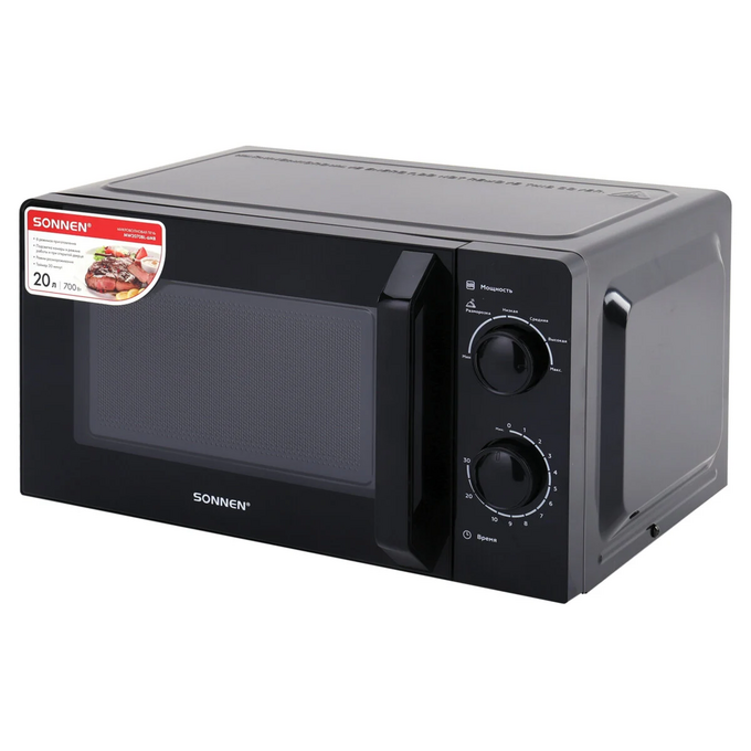 Микроволновая печь SONNEN MW2070BL-6MB, 20л, 700Вт, таймер, механическое управление, ручка, черная