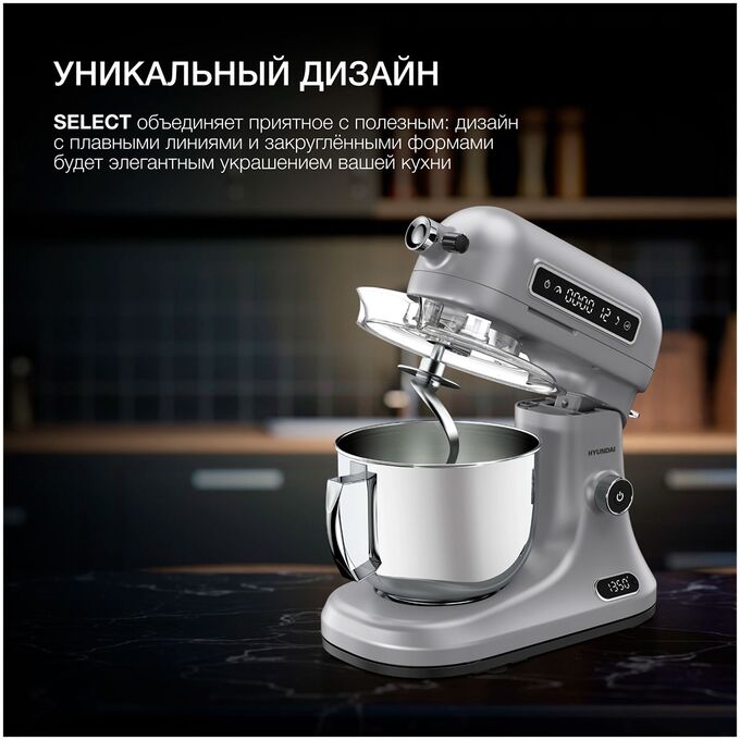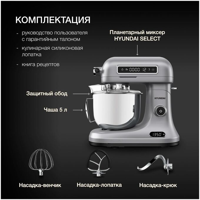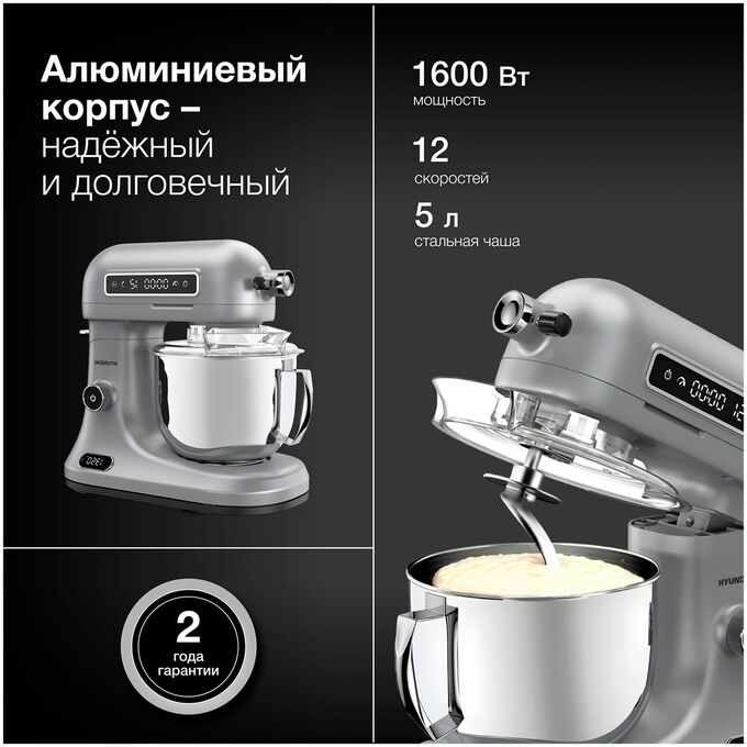 Миксер планетарный Hyundai HYM-S8551 серебристый