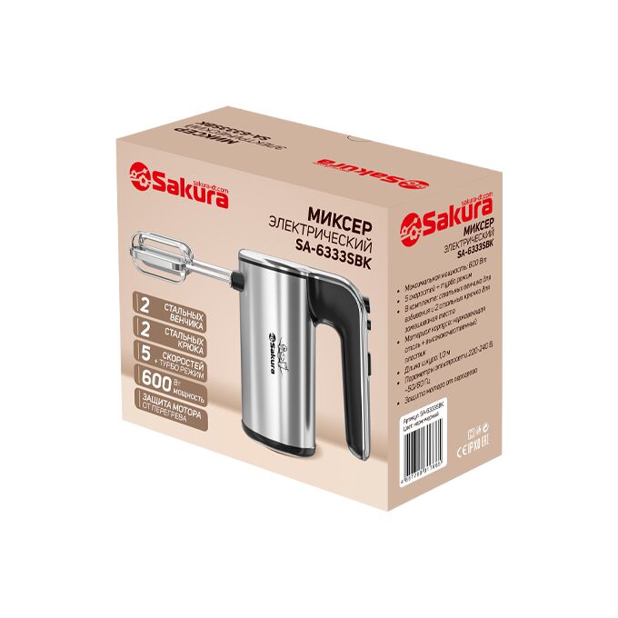 Комплектация: венчики для взбивания, крюки для замешивания теста