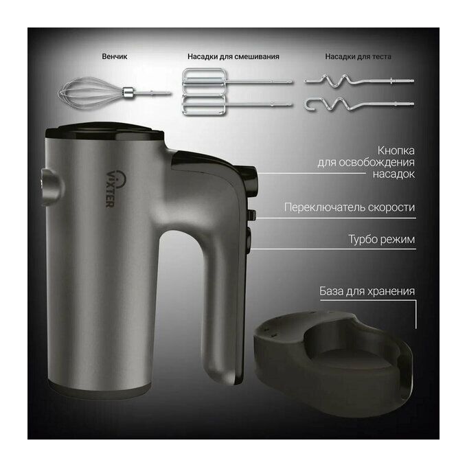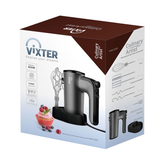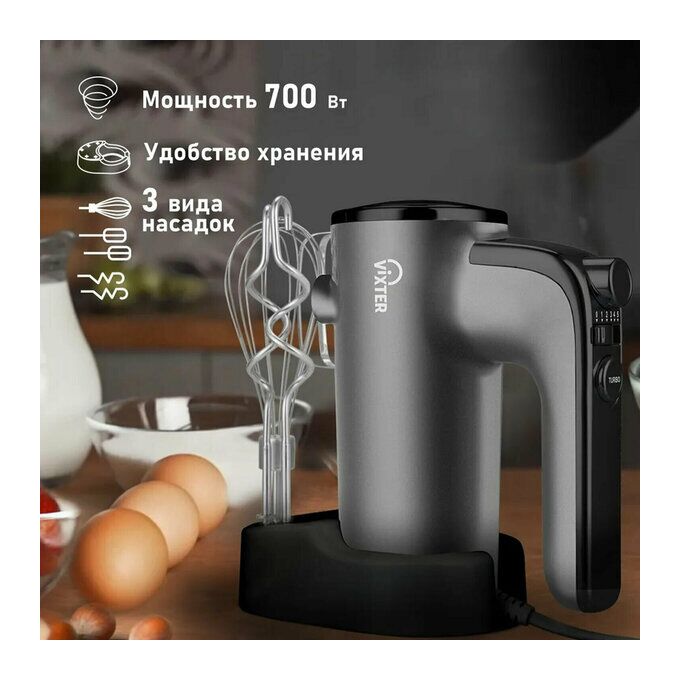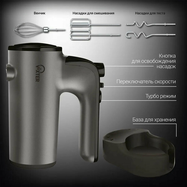 Миксер предназначен для смешивания жидкостей, приготовления соусов, десертов, взбитых сливок, пудингов, коктейлей, а также для замешивания теста.
