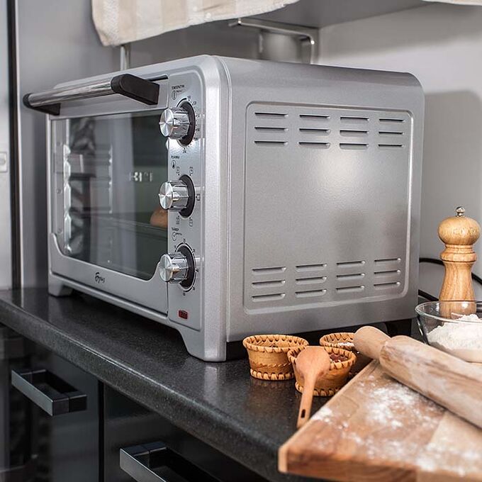 Компактная многофункциональная мини-печь отлично заменит духовку, обеспечив приготовление самых разных блюд: от курицы-гриль до вкусной выпечки.