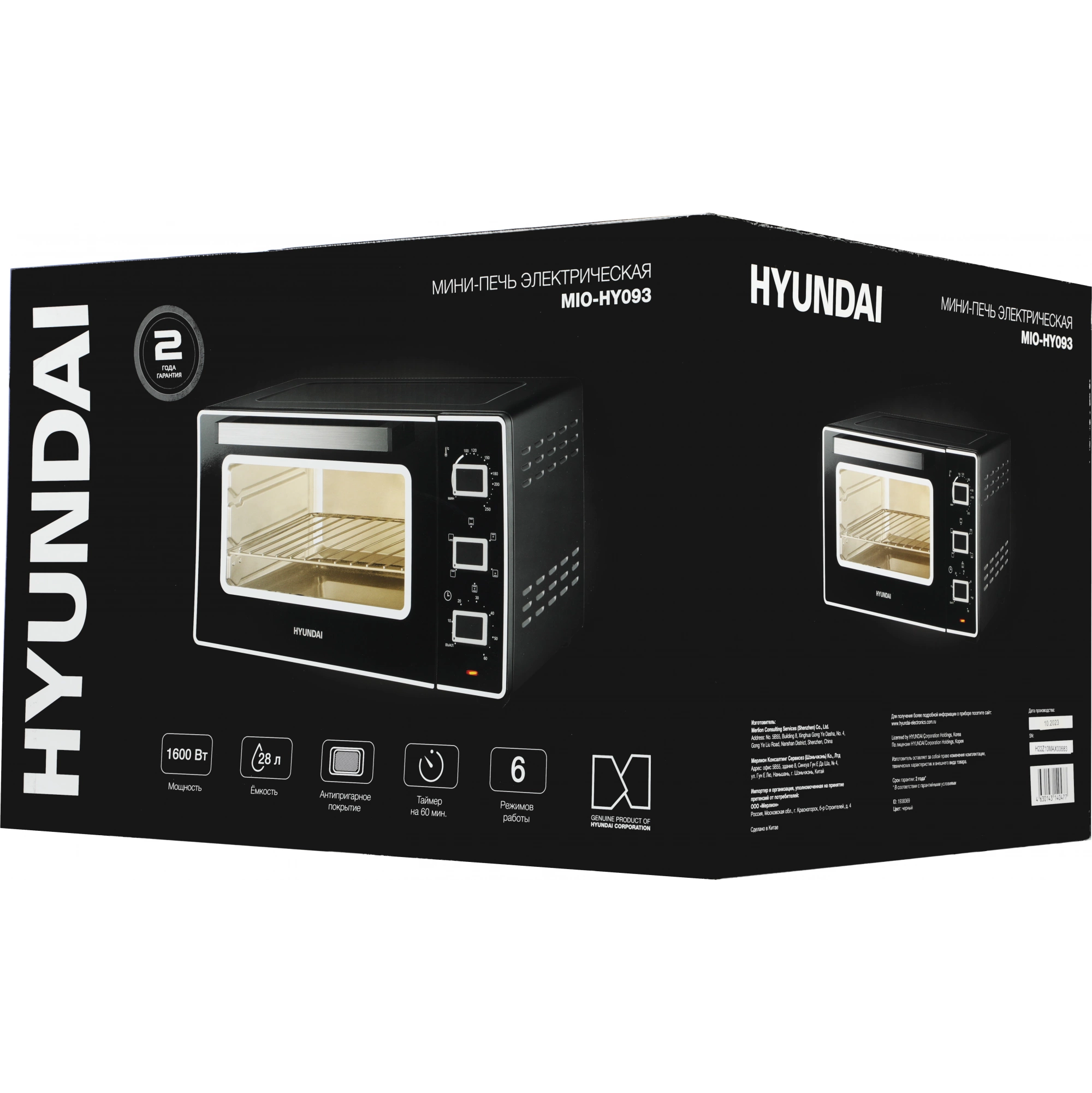 Мини-печь Hyundai MIO-HY093 28л. 1600Вт черный