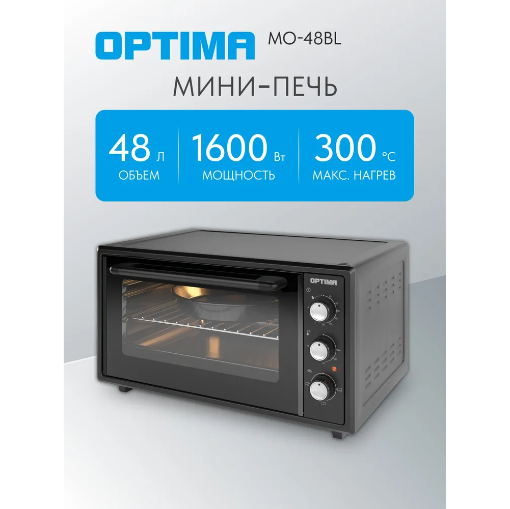 Мини-печь OPTIMA MO-48BL 48л, эмал.внутр.поверх., лампа, таймер, черный 1600Вт