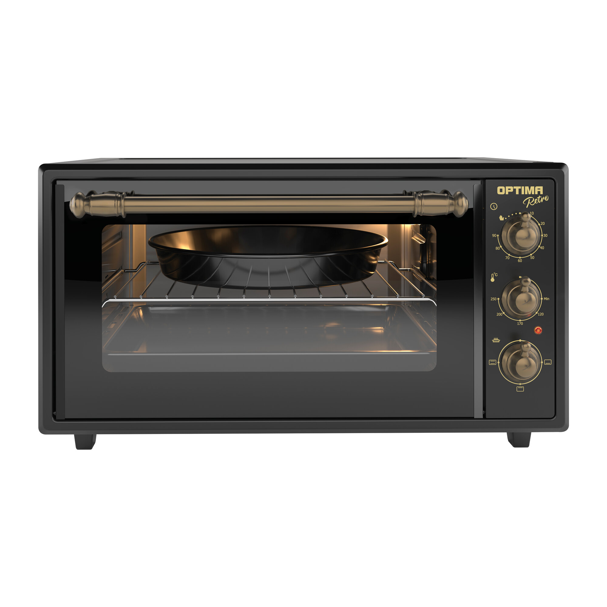 Мини-печь OPTIMA MO-48BLR 48л, эмал.внутр.поверх., лампа, таймер, ретро-черный 1600Вт