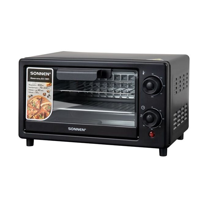 Мини-печь SONNEN EO-1001 (458308) 800Вт, 10л, таймер, нагрев до 230 °C, черная