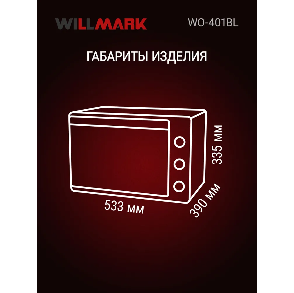 Мини-печь WILLMARK WO-401BL 40л, лампа, таймер, 4 линейных ТЭНа, черный 1700Вт