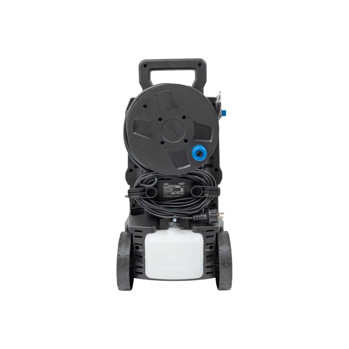- Удобство и функциональность — встроенный моющий бак, 8-метровый анти-твист шланг, телескопическая ручка и большие колёса обеспечивают комфорт в эксплуатации и мобильность.
