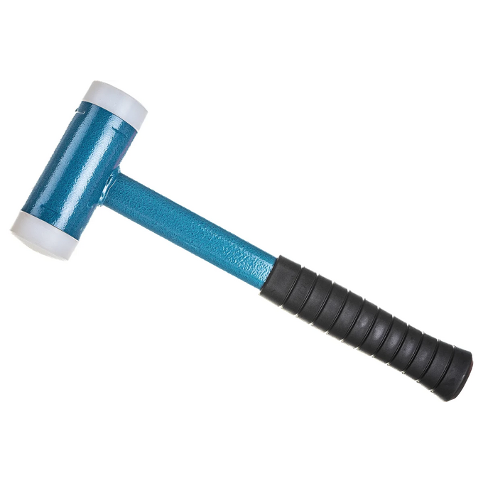 Безынерционный молоток КВТ МБ-50н 80106 оснащен головками из нейлона - они обладают необходимой упругостью для передачи энергии от инструмента на металл.