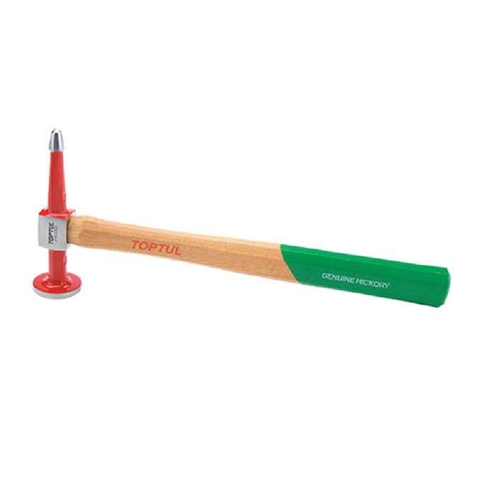 Молоток рихтовочный TOPTUL имеет круглую рабочую поверхность диаметром 40 мм с одной стороны и шпилеобразный наконечник с другой стороны. Рекомендуется для профессионального использования.