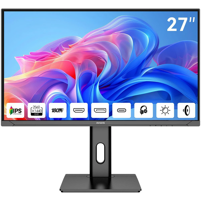 Монитор AIWA MD2714 Black IPS, 2560x1440, HDMI+DP+Type C 65W, 1 ms, 178°/178°, 350 cd/m, 1000:1, 180Hz, Spk, Pivot