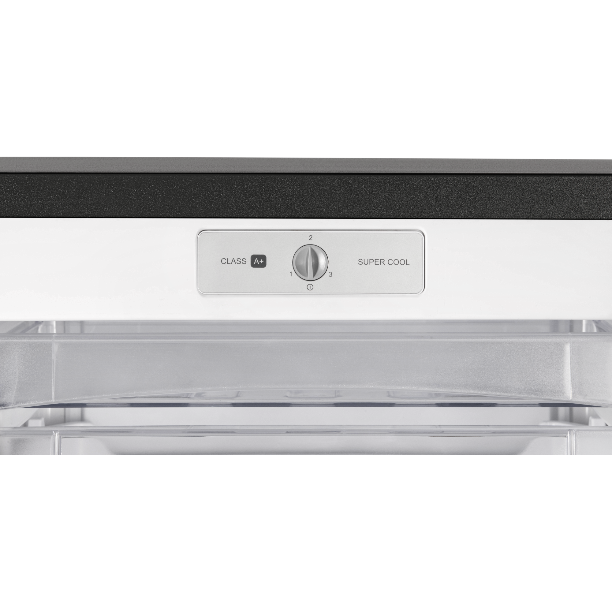 Панель управления модели расположена внутри камеры. Откорректировать температуру позволит механический термостат с 3 режимами заморозки, где «1» — самая высокая температура, а «3» — максимально низкая -18°С.