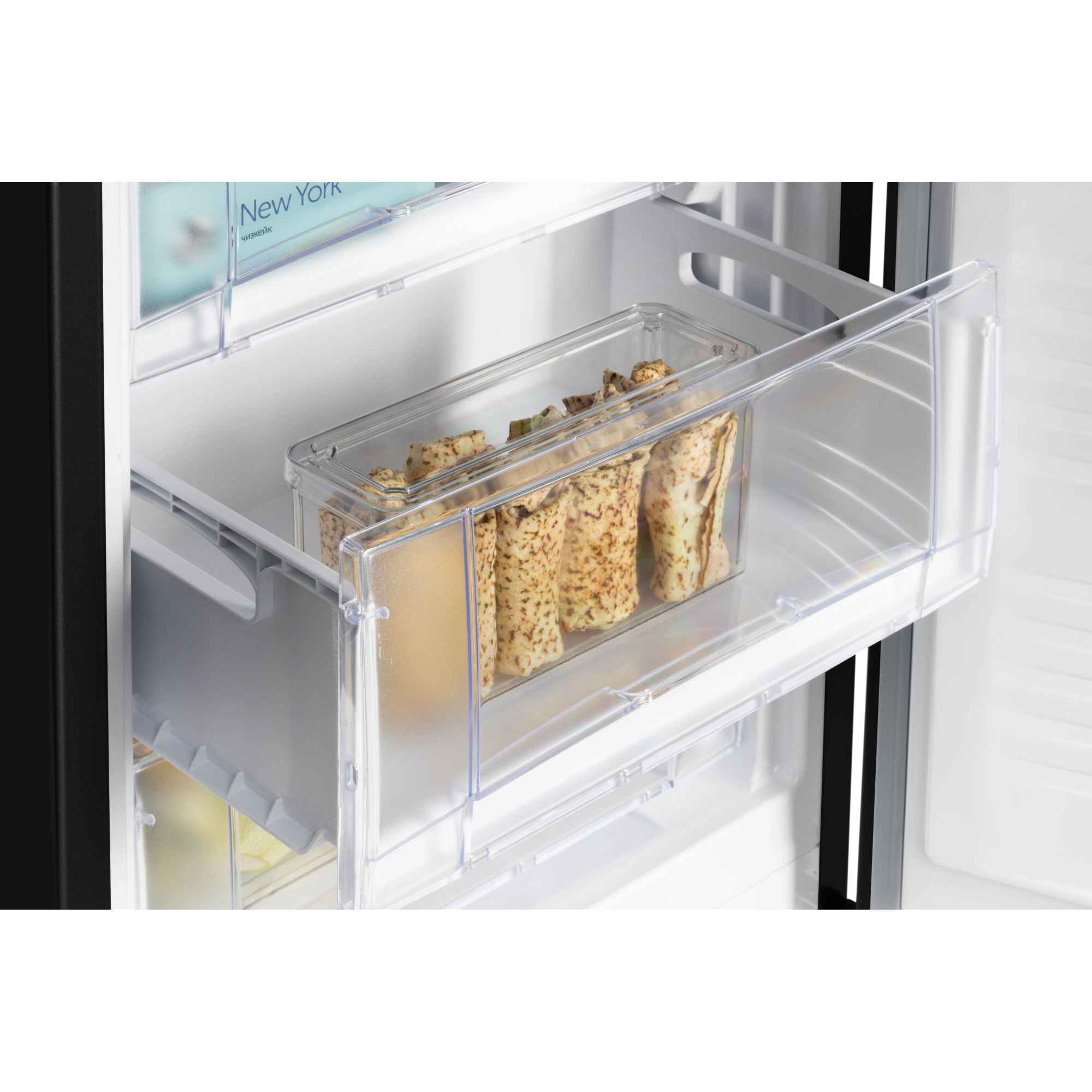 Морозильник имеет 3 выдвижных прозрачных ящика для размещения продуктов и форму для льда. Внутренняя поверхность модели имеет антибактериальное покрытие, которое предотвращает появление неприятных запахов и образование бактерий.