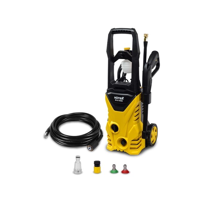 мойка высокого давления, пистолет-распылитель разборный, шланг высокого давления, игла для очистки сопла, фильтр, быстросъёмный коннектор для шланга подачи воды, руководство по эксплуатации