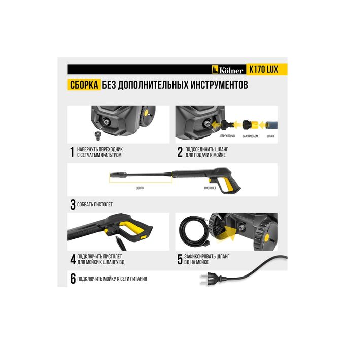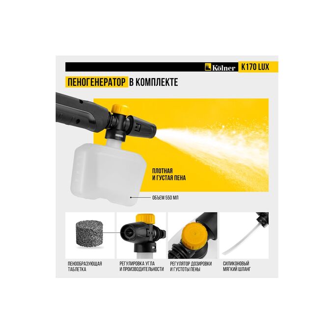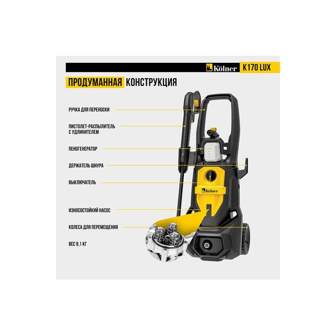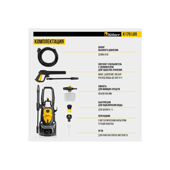 Минимойка Kolner K170 Lux — мощное и надежное решение для эффективной очистки любых поверхностей.