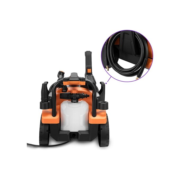 Мойка высокого давления KT-9162 предназначена для мытья автомобилей, садовых принадлежностей, фасадов, террас, плитки, кирпичной кладки и иных влагостойких поверхностей с помощью струи воды под высоким давлением.