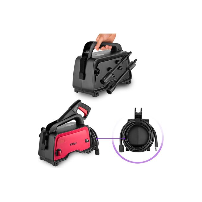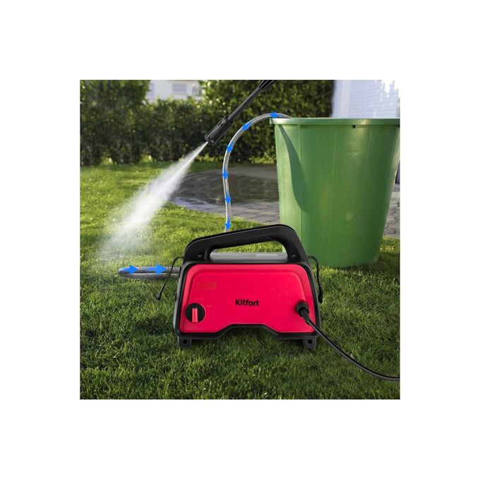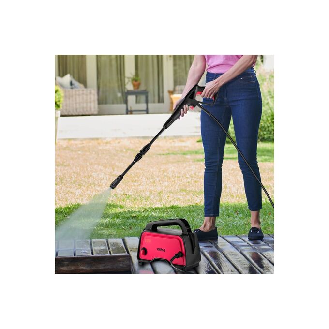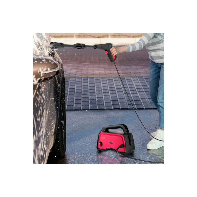 Мойка высокого давления KT-9163 предназначена для мытья автомобилей, садовых принадлежностей, фасадов, террас, плитки, кирпичной кладки и иных влагостойких поверхностей с помощью струи воды под высоким давлением. Благодаря небольшому весу и компактности устройство удобно при транспортировке и хранении.