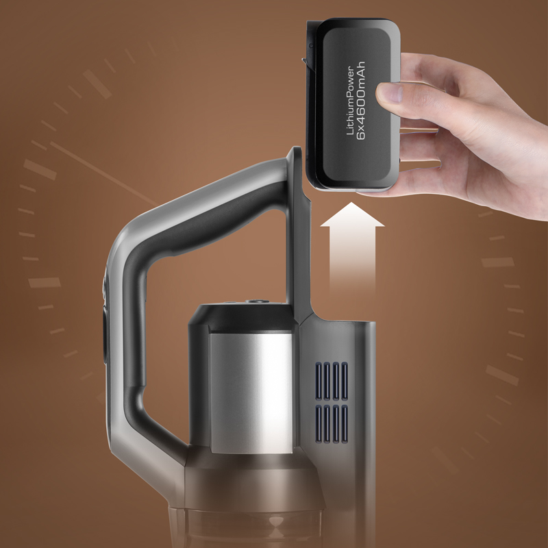 Увеличенное время уборки благодаря съемному аккумулятору