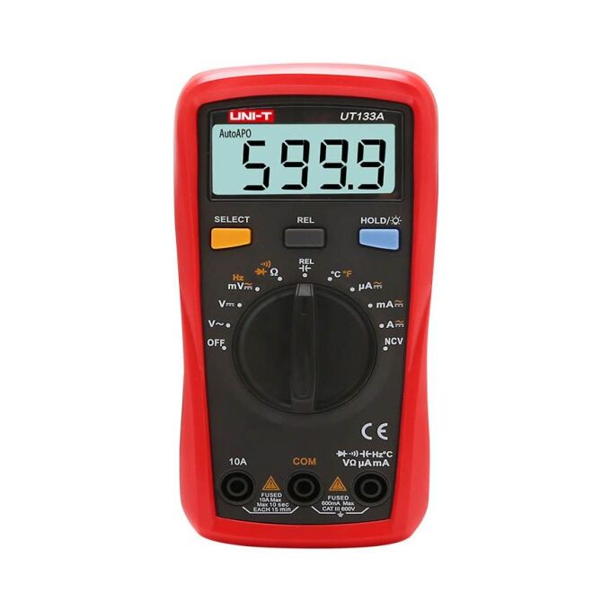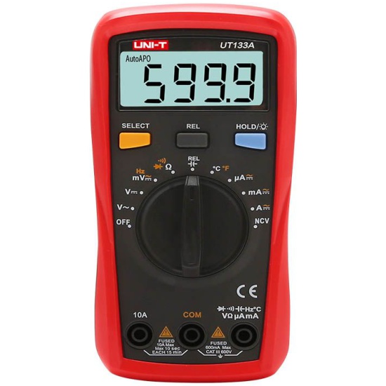 Дополнительные функции:автоматическое отключение питания, дисплей с подсветкой, фиксация показаний дисплея (HOLD), индикация разряда батареи, бесконтактный детектор напряжения, тест диодов, прозвонка целостности цепи