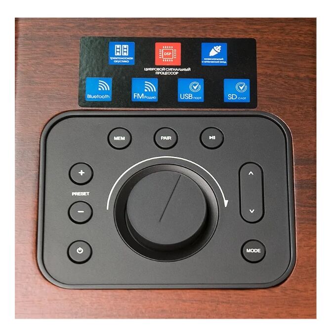 Активная акустическая стереосистема c DSP, Bluetooth, караоке, кардридером, USB портом, FM радио и цифровыми входами Dialog AP-2500 Brown