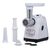 Мясорубка выполненная в белом цвете, оснащена мощным мотором. Мясорубка имеет одну скорость работы и функцию реверса. Производительность прибора 2.2 кг мяса за одну минуту. В комплект входят три решетки для изготовления фарша, а также дополнительные насадки для колбас. Корпус, элементы и лоток мясорубки легко мыть и чистить. Эта модель выглядит солидно, и она, действительно, удобна в использовании, а её облик гармонично дополнит любую кухню.