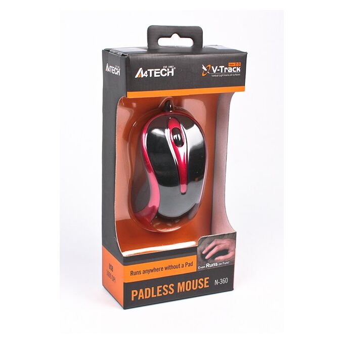 Мышь A4Tech V-Track Padless N-360-2 Red/Black, оптическая,1000dpi, 2кн, USB