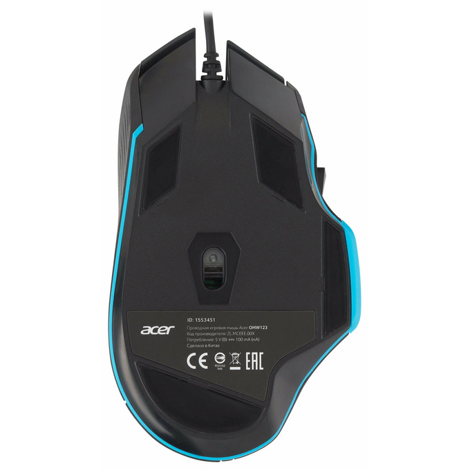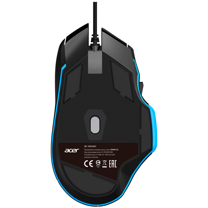 Мышь Acer OMW123 черный, оптическая, разрешение сенсора 6400dpi, проводная, длина провода 1.8м, кнопок: 6, подходит для правой руки (ZL. MCEEE.00X)