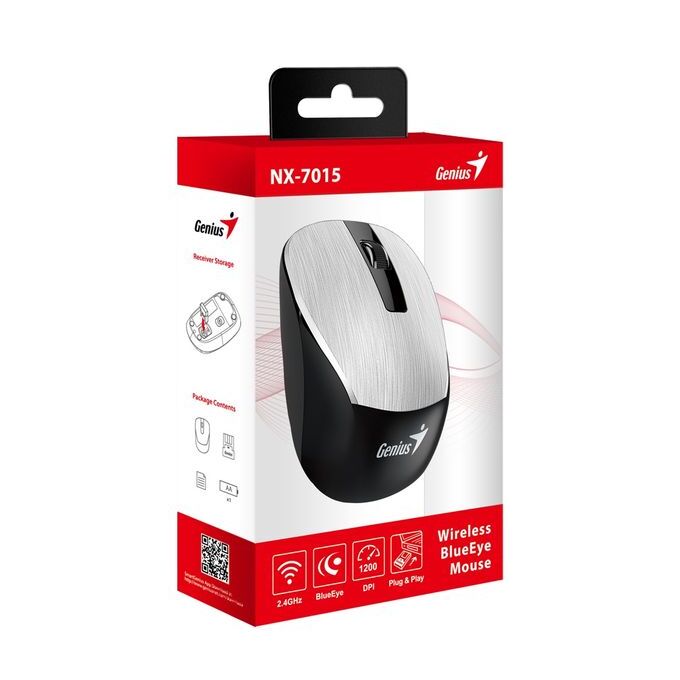 Мышь беспроводная Genius NX-7015 800-1200-1600 серебристый