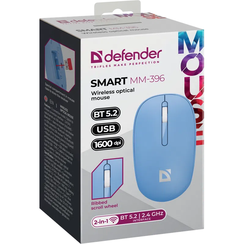 Мышь DEFENDER Smart MM-396 Син,3кн,2.4G+BT,500мАч,1600dpi (52397)