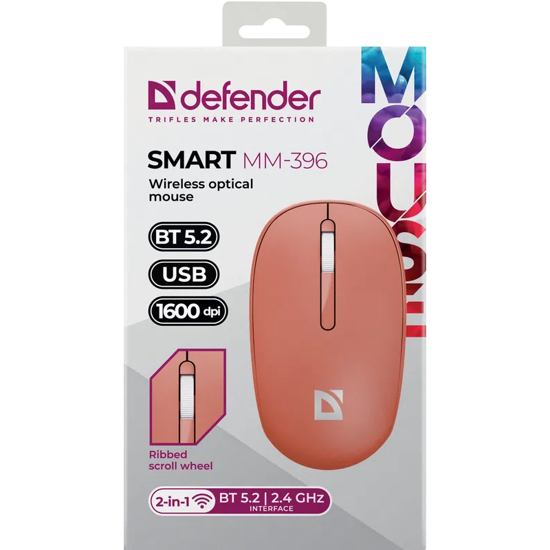 Мышь DEFENDER Smart MM-396 Крас,3к,2.4G+BT,500мАч,1600dpi (52398)