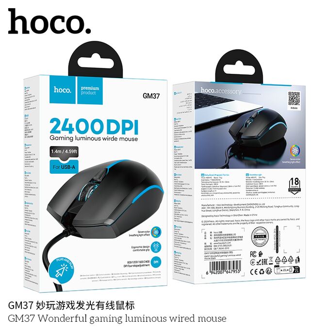 Мышь HOCO GM37 Wonderful игровая с подсветкой (черный)