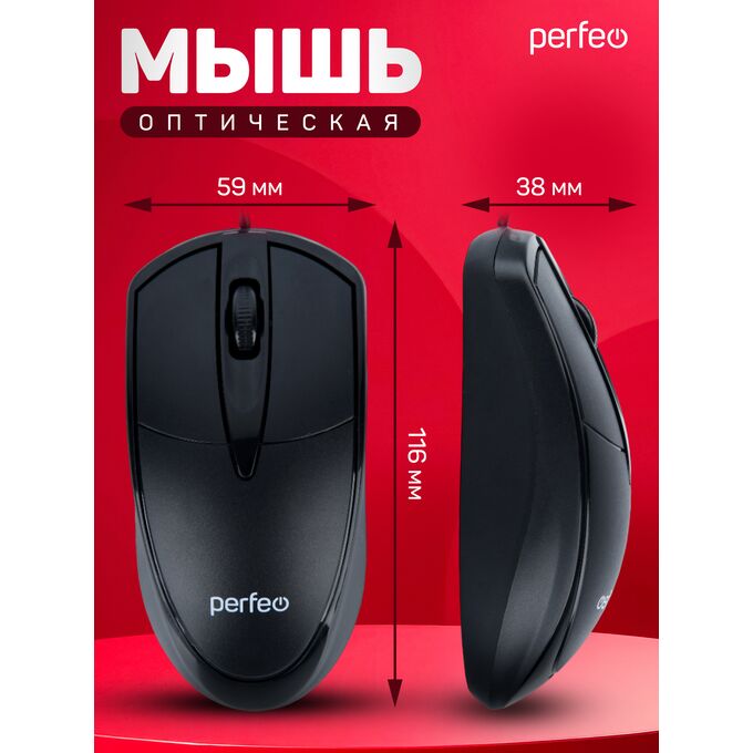 Проводная оптическая мышь Perfeo FIRST для повседневного использования в офисе и дома. Поверхность комбинированная - текстурированная матовая с глянцевыми вставками. Мышка имеет симметричный дизайн, поэтому подходит и для правой, и для левой руки. Кнопки не скользящие с матовым покрытием. Это делает использование более комфортным и на поверхности не остаются отпечатки пальцев. Колёсико-кнопка пластиковое с ребристой поверхностью, что обеспечивает комфортный скроллинг плавный и без рывков. Конструкция мышки простая, но прочная и надёжная, что обеспечит долгий срок службы. Кабель длиной 1,8 метра позволит использовать мышь практически на любом рабочем месте. Не нужно заботиться и тратиться на замену батареек и опасаться, что мышь перестанет работать в самый ответственный момент. Оптический сенсор мыши позволяет работать практически на любой поверхности. Системные требования: Windows 11/10/8/7/XP, Mac OS, свободный порт USB