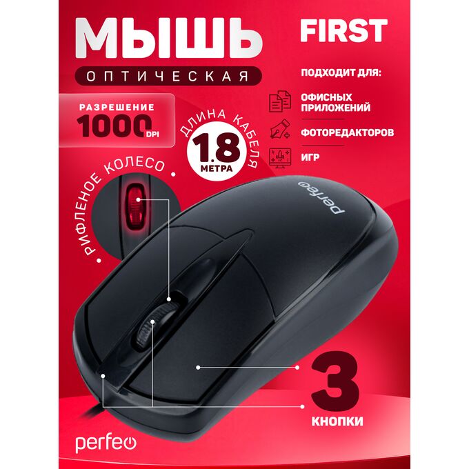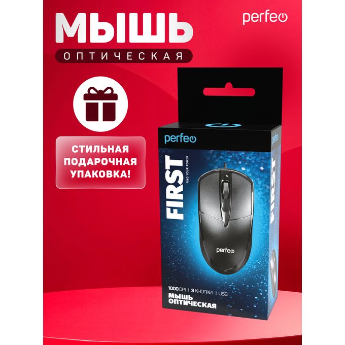 Оптическая мышь Perfeo "FIRST", чёрный