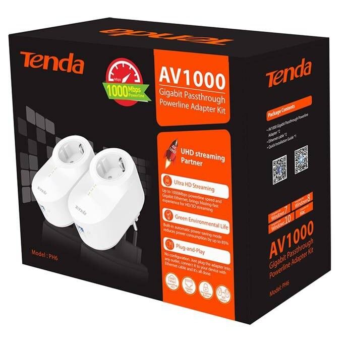 Набор 2хPowerLine адаптеров Tenda PH6 AV1000 со встроенной розеткой
