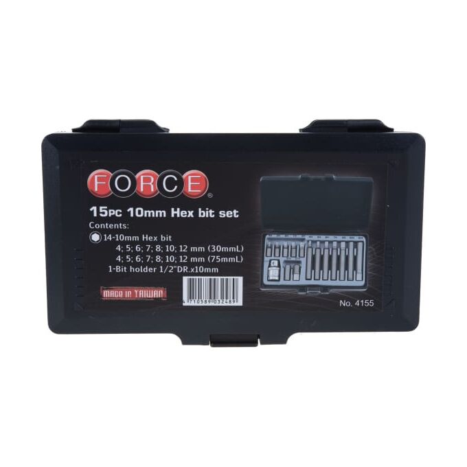 Набор бит-шестигранных FORCE 4155 15пр.4-22mm L-30,75mm 1/2