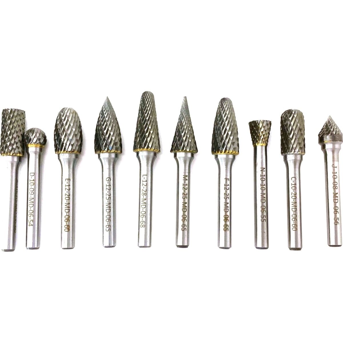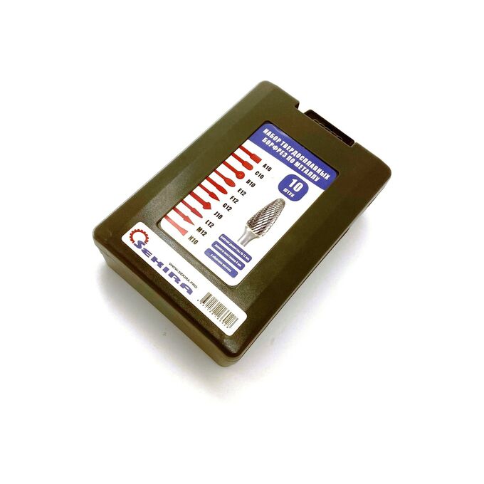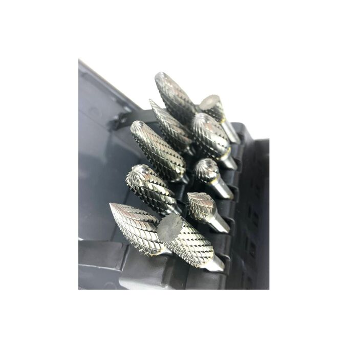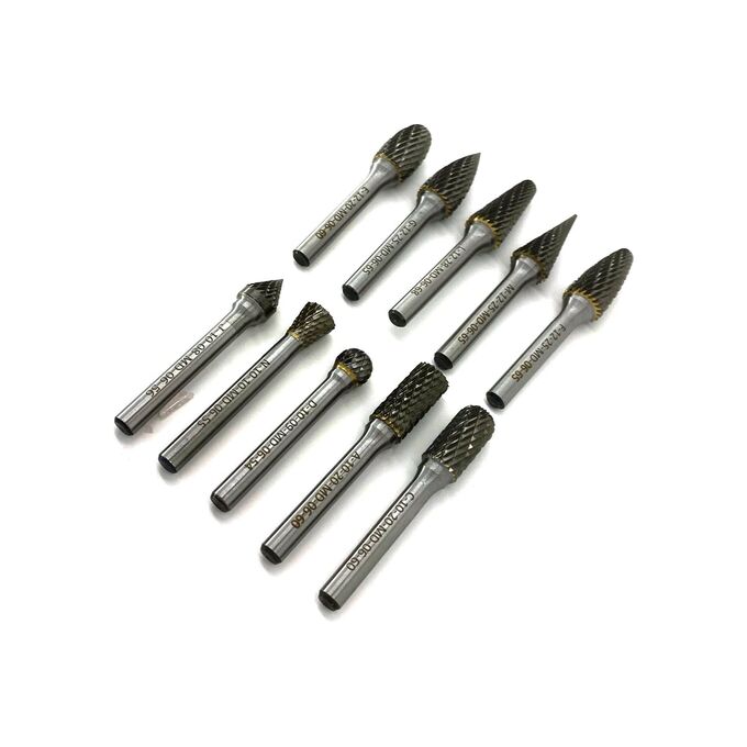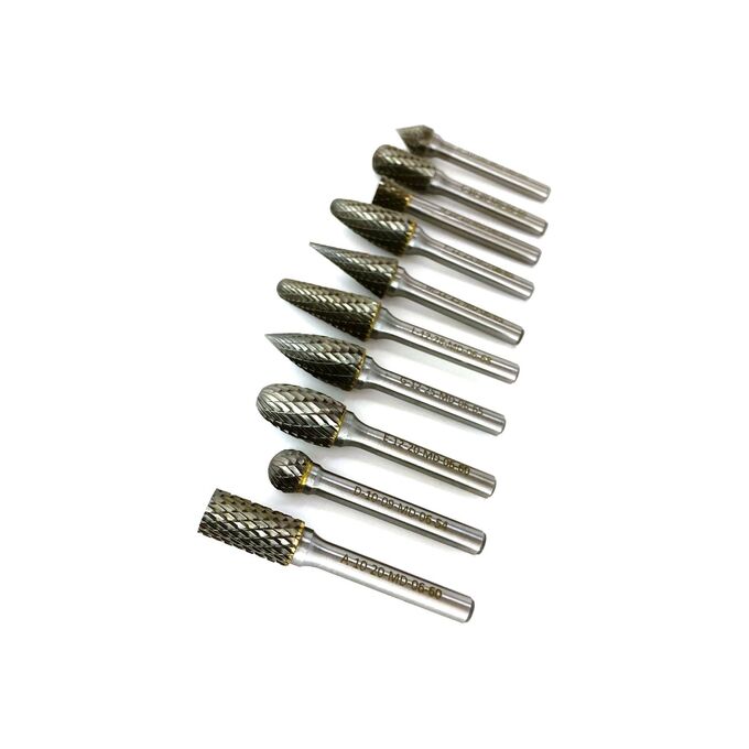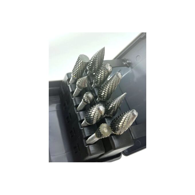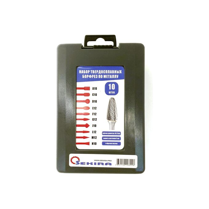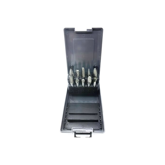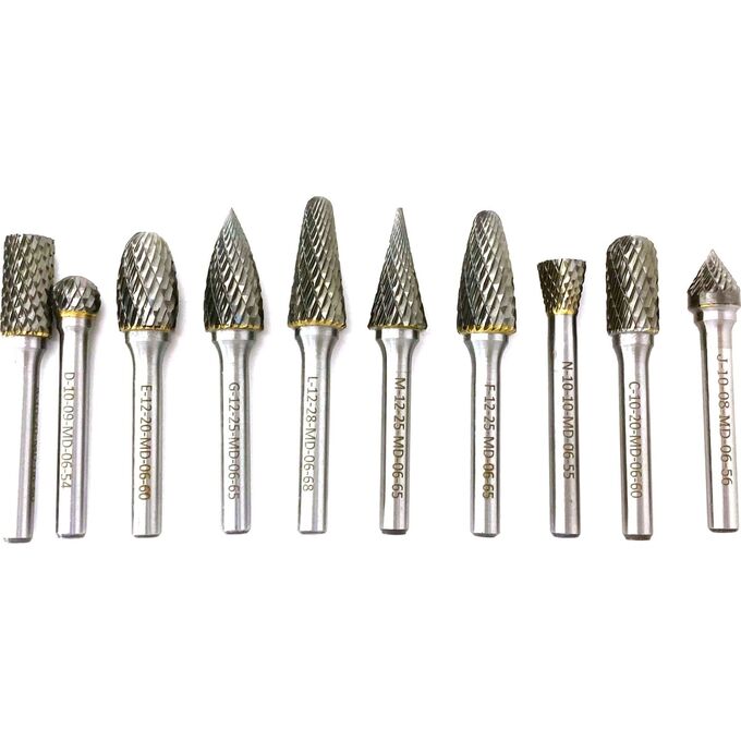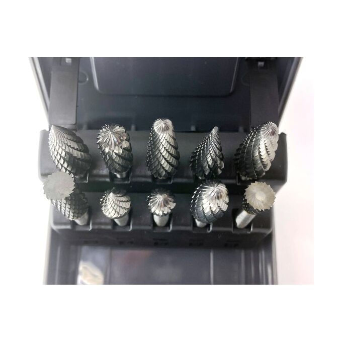 Набор борфрез твердосплавных Sekira (00-00018050) из 10шт. (A10,C10,D10,E12,F12,G12,J10,L12,M12,N10)х6мм Х-образная насечка