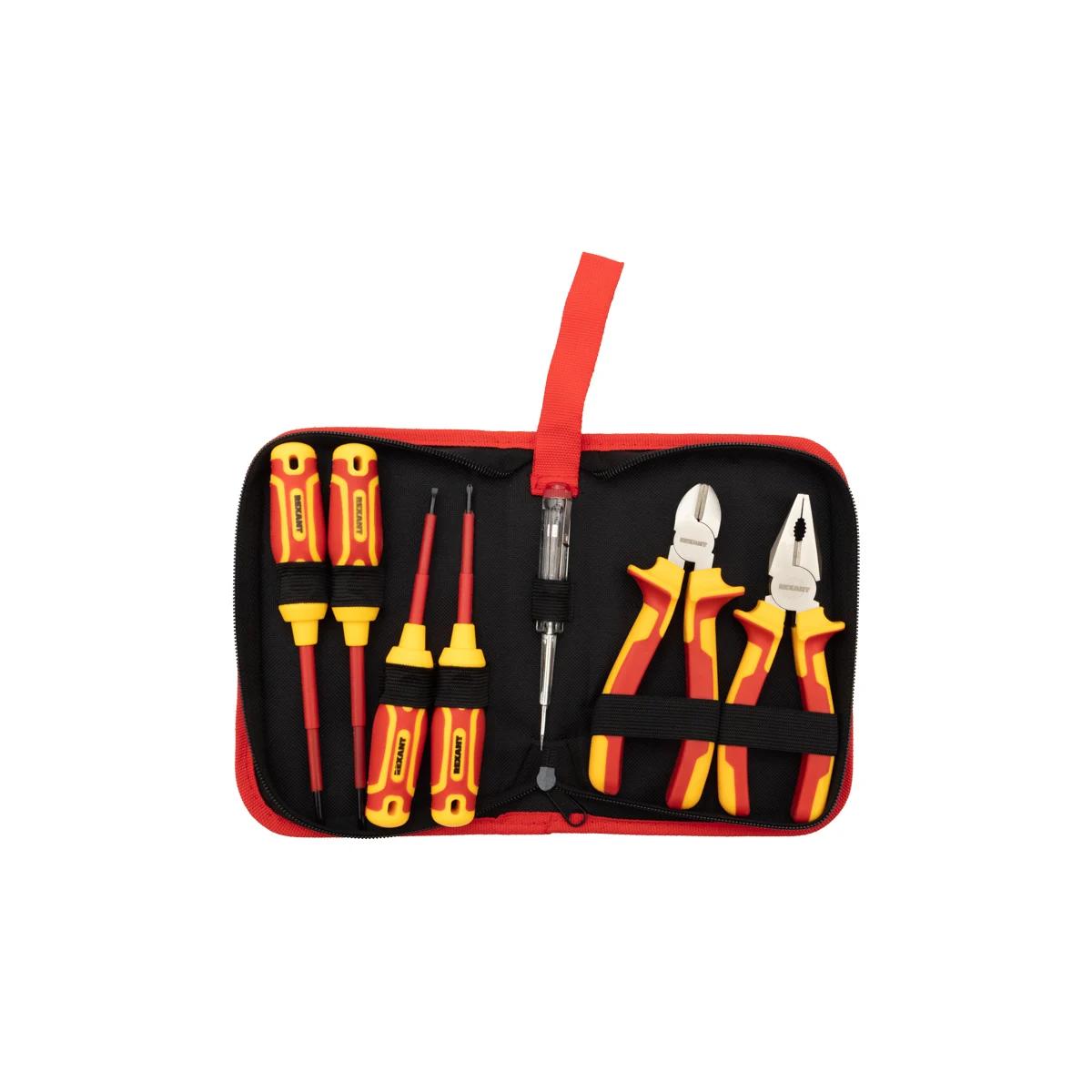 Набор диэлектрического инструмента REXANT RI-01, 7 предметов, до 1000 В, тканевый пенал 12-4691-3 предназначен для широкого спектра слесарных и монтажных работ, перекусывания проводов и проволоки, а также для удаления изоляции с проводов, для выполнения сборочных, разборочных работ, для монтажа и демонтажа резьбовых соединений: шурупов, саморезов и т. д. Отлично подходит для работы с оборудованием напряжением до 1000 В. Зоны захвата губок предназначены как для плоских, так и для круглых деталей, что делает инструменты многофункциональными.