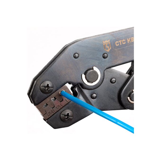 Набор КВТ СТС+5 в сумке 86875 представляет собой универсальный инструмент с набором сменных матриц для опрессовки широкого ряда неизолированных разъемов и наконечников (автоклемм), втулочных наконечников, изолированных наконечников и разъемов, неизолированных трубчатых наконечников и гильз. Легкий, компактный и эргономичный инструмент с углом наклона головы 23° обеспечивает комфортную эксплуатацию. Пресс-клещи СТС несовместимы с матрицами МПК (КВТ). Храповой механизм обеспечивает блокировку обратного хода до завершения полного цикла опрессовки. Устройство разблокировки храпового механизма упрощает смену матриц. Регулятор прижимного усилия матриц позволяет настроить необходимое усилие зажима. Двухкомпонентные эргономичные рукоятки с небольшим раскрытием обеспечивают надежный хват. Поверхность инструмента обработана воронением для дополнительной прочности и долговечности.