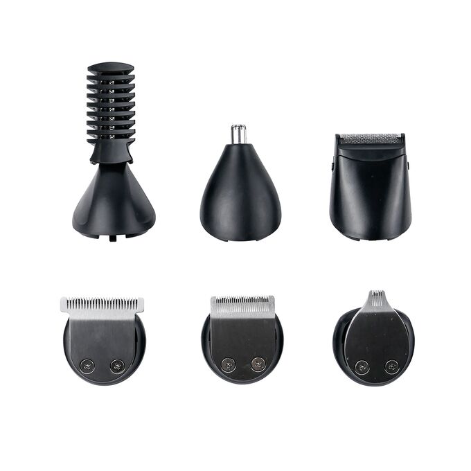USB-зарядка, База подзарядки, Масло, Микротриммер, Насадка-бритва, Насадка-гребень (10 шт.), Насадка-гребень (4 шт.), Насадка-стайлер, Насадка-триммер, Насадка-триммер для носа, Насадка-триммер для тела