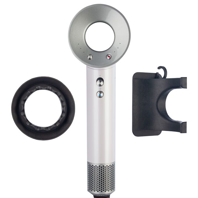 Набор фен (6 в 1) с насадками, 3м в кейсе (Белый с серебром)