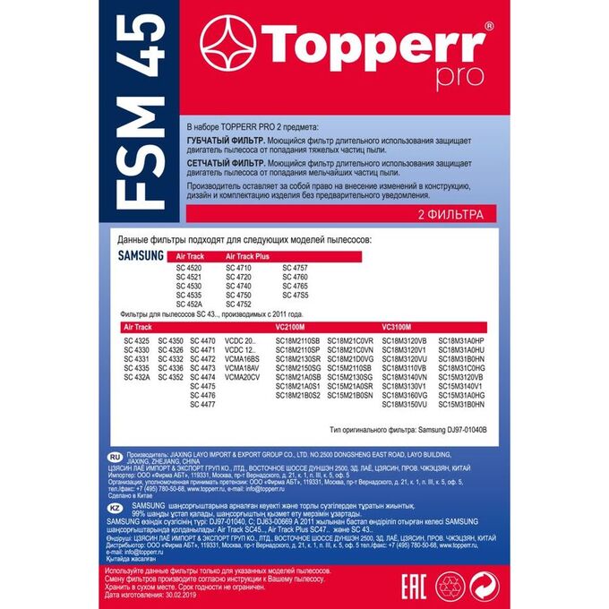 Набор фильтров Topperr FSM45 1111 (2фильт.)