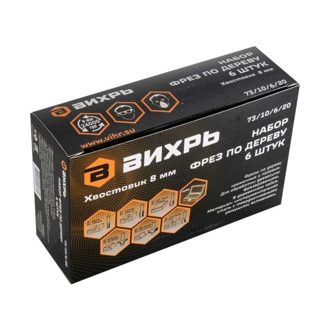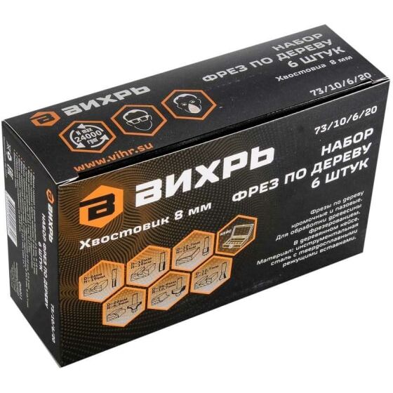 Технические характеристики набора фрез по дереву Вихрь 73/10/6/20